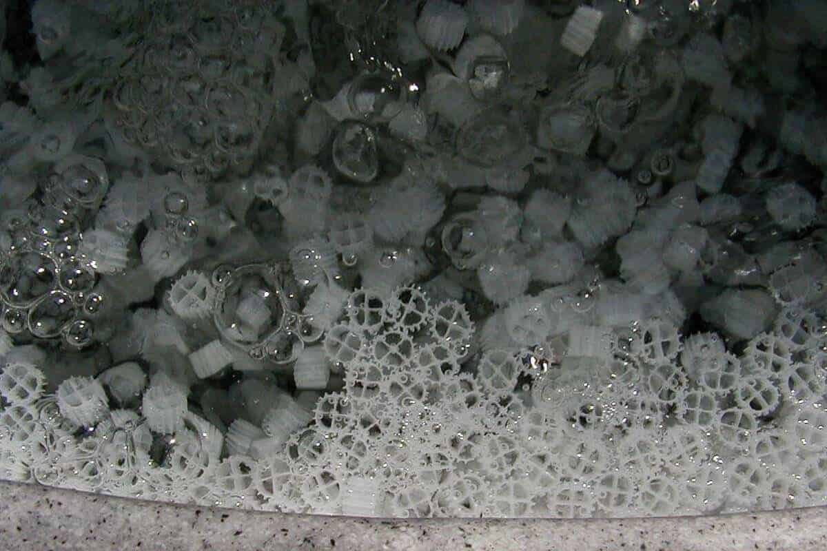De duizenden korrels bijéén zorgen voor een bed waar het water doorheen stroomt. Onderaan het bed wordt het vuil, dat de voorfilter passeerde tegengehouden (mechanische filtering. De korrels in het bed zorgen op hun beurt dan voor de biologische filtering. Te zeggen, hierop hecht zich de bacteriekulonie die zal zorgen voor de omzetting van ammoniak naar nitraat.