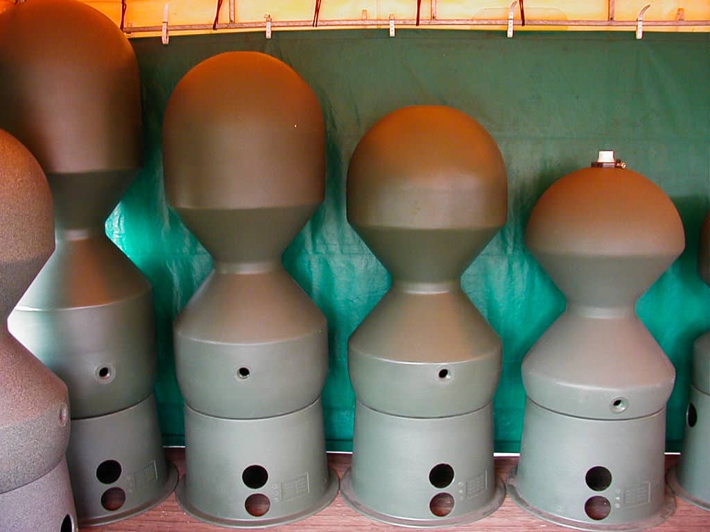 Bubblebead filters zijn zeer makkelijk te herkennen aan hun zandloperachtige vormgeving. Het smalle gedeelte is de washals. Ze staan boven waterniveau.