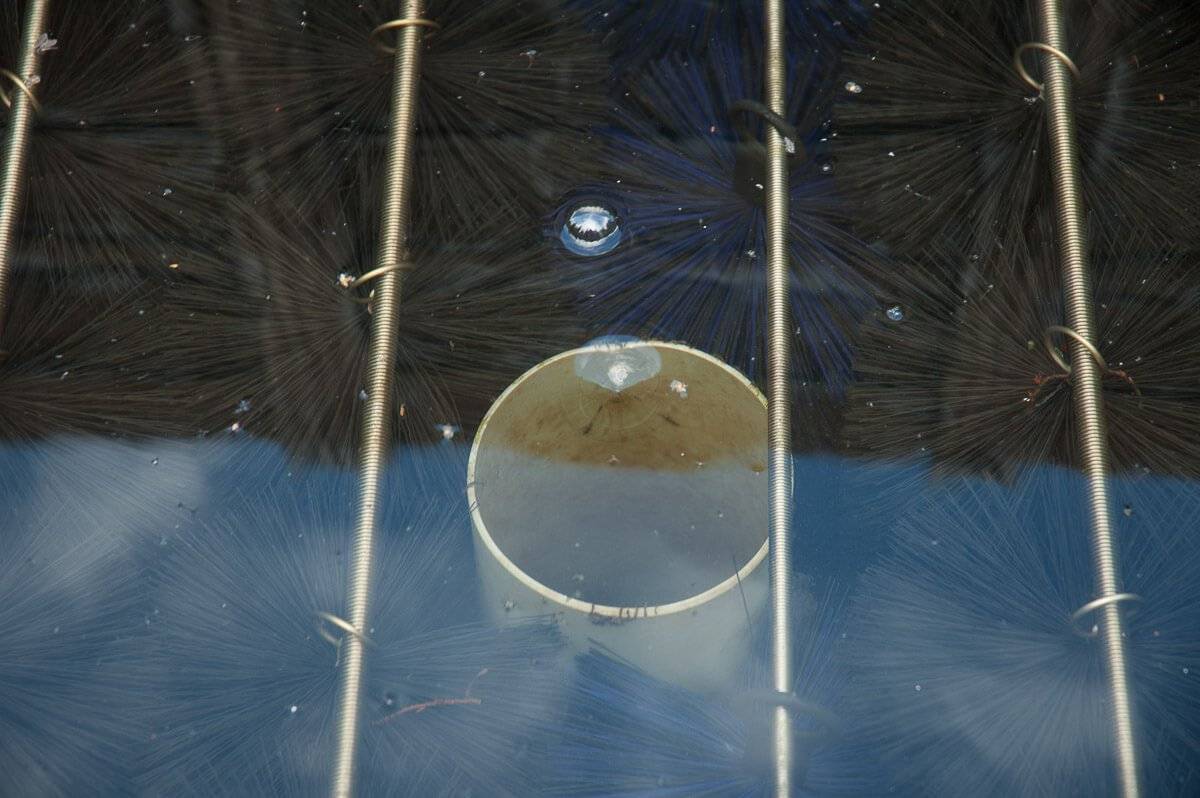 Filterborstels komen altijd op de eerste plaats bij mechanische filtering. Ze houden met hun haren het grofste en meeste organisch vuil tegen maar kunnen door hun vorm en structuur ook niet dichtslippen. De borstels zijn verkrijgbaar in verschillende maten (lengtes en diameters). Plaats de borstels zo dicht mogelijk bij elkaar met zo weinig mogelijk tussenruimte om zoveel mogelijk vuil tegen te houden. De borstels hebben een haakje waarmee u ze best ophangt aan een sterke buis want door water en het organisch vuil kunnen ze doorwegen. Omdat ze zoveel vuil tegenhouden moet u de borstels regelmatig afspoelen.