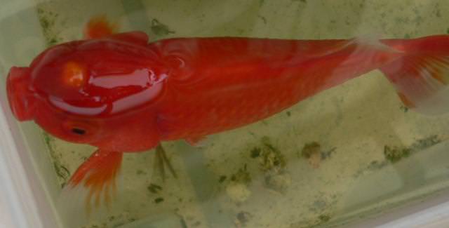 Op een andere vis in quarantaine na de loslatende shubben heeft en een heel erg dikke buik en hiervoor behandeld w.