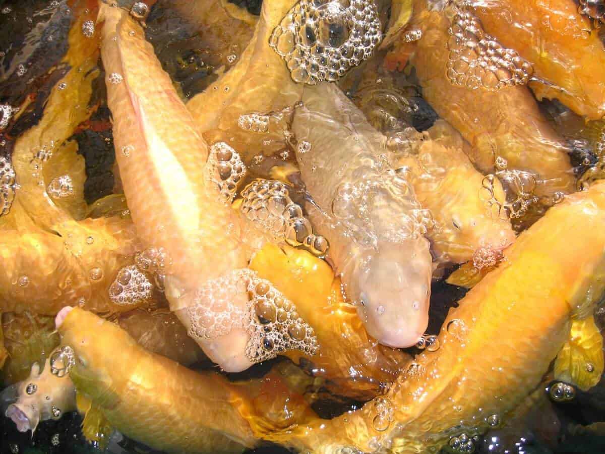 - Karashigoi zijn mosterdgeel. Kleurtinten zoals bruinig, rozig, meer geelachtig,… het kan allemaal.