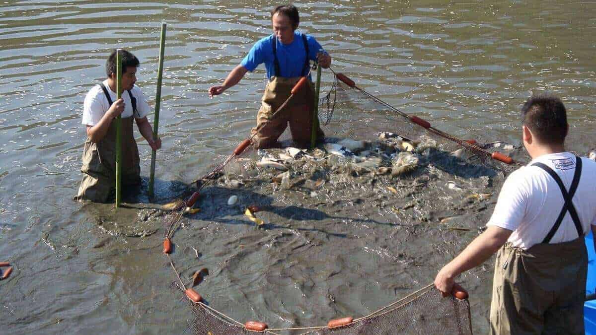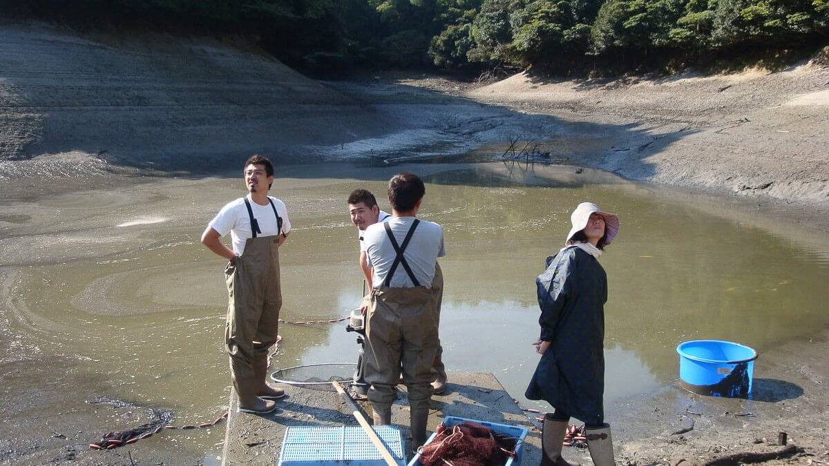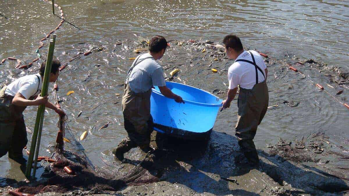 Het leeghalen van de mudponds is een essentieel onderdeel van dit proces. Gedurende een langere periode hebben de koi in deze vijvers zonder folie kunnen gedijen. Ze konden er vrijelijk zwemmen, zich ontwikkelen en uitgroeien tot prachtige exemplaren. Met de komst van de winter worden de koi naar binnen gehaald. De mudponds worden gedeeltelijk geleegd en de koi worden met grote netten uit het water gehaald.