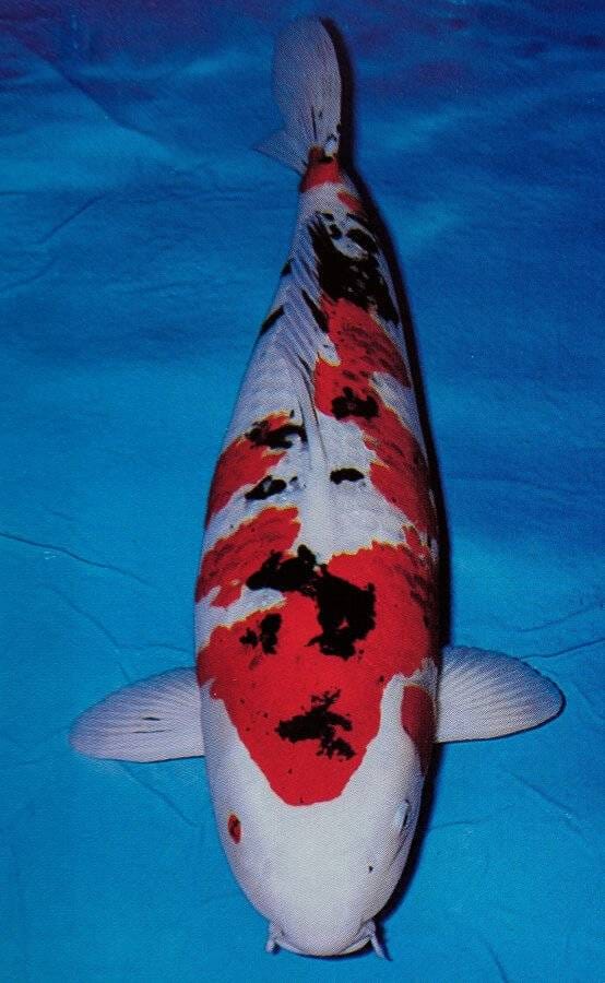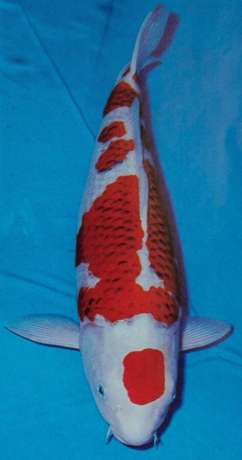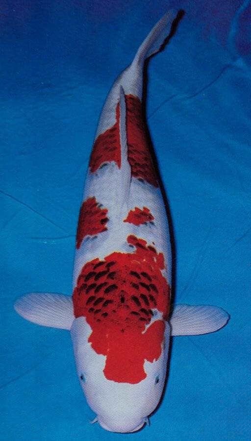Net zoals bij de TAISHO SANKE is er een zuiver rode vlek op het hoofd en zijn de vinnen wit of voorzien van enkele sumi streepjes.