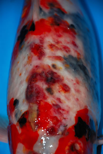 In de overtuiging dat dit de oorzaak is laten de koi keepers de wond voor wat het is en hopen ze dat de wond van zichzelf geneest terwijl het in veel gevallen enkel maar kan verergeren.