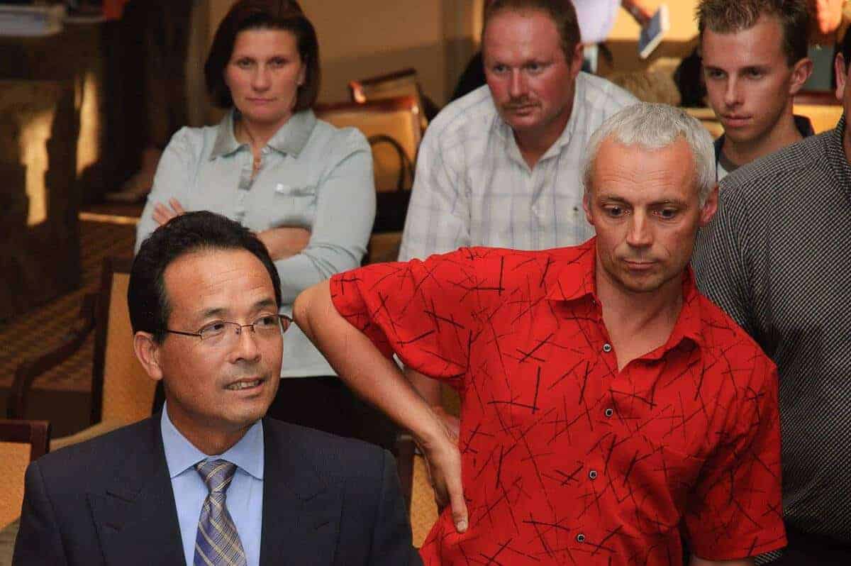 Uiteraard niet te vergeten, de broodnodige tolken. Er werd vertaald van het Japans naar het Engels en van het Engels naar het Nederlands. Een niet altijd zo éénvoudige opgave. Kwam erbij dat een tolk uit Amerika werd overgevlogen naar België maar orkaan Isabel zorgde voor een behoorlijke vertraging waardoor de voorziene seminariepunten op het laatste moment wat gewijzigd moesten worden.