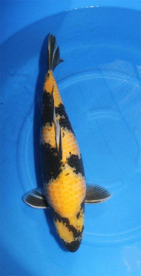 - HI UTSURI: Is een koi met dieprode vlekken op een zwarte ondergrond.