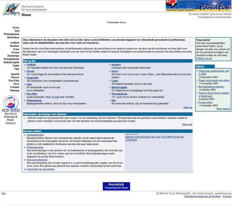 Het was de allereerste onafhankelijke, Nederlandstalige informatieve vijverwebsite op het internet.