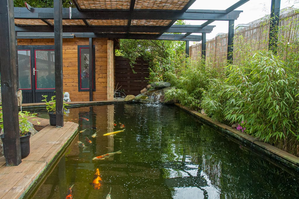 Het toevoegen van een waterpartij aan je vijver kan helpen het water te beluchten en je koi gezond te houden. Waterfuncties zoals beluchters, watervallen of fonteinen zorgen voor constante circulatie, wat de watertemperatuur verlaagt en optimale omstandigheden creëert voor je vijver.