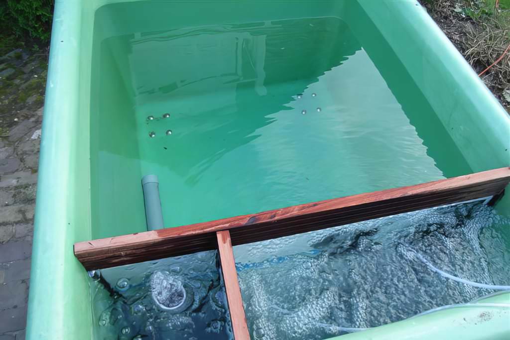 Eerder hebben we in dit artikel vermeld dat een quarantaine tank ook moet worden voorzien van een biologische filter. Deze biologische filter wordt het best buiten de tank zelf geplaatst op waterniveauhoogte van de tank. Deze biologische filter beschikt best ook over een bodemdrainage en afvoer zoals in de eigenlijke vijver. Zo kunnen we de filter goed spoelen en dat is nodig.