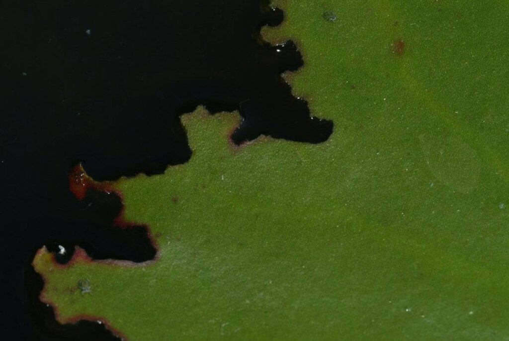 Soms gebeurt het dat de bladeren van waterlelies een andere drijfbladplanten worden aangevreten langs de randen. Er zijn kleine en grote happen uit verdwenen. Echt duidelijk is de oorzaak niet. De boosdoeners zijn dan ook goed gecamoufleerd. We moeten er echt naar zoeken. Het zijn rupsen van motvlinders die de schade veroorzaken. Ze leven in omhulsel van afgebeten stukken blad en kroos die ze zelf aan elkaar plakken.