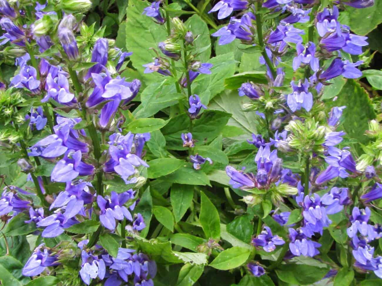Virginische lobelia is in onze streken goed winterhard en bloeit van juli tot oktober. Het is een langbloeier die meestal tussen 70 cm en 90 cm hoog wordt. De Virginische lobelia verkiest vruchtbare, vochtige grond en mag gerust in de schaduw staan. De dikke bebladerde aren zijn rondom bezet met blauwviulette bloemen. Virginische lobelia zaait zich vaak zelf uit maar meestal zonder lastig te worden. Er worden soms kulonies gevormd die goed harmoniëren met een wilde of halfwilde beplanting. Virginische lobelia kan gewoon in de tuinborder maar voelt zich veel beter in het moeras, met de wortels in het nat. De kroon steekt wel best boven het water uit, hoewel een tijdelijke onderdompeling redelijk goed verdragen wordt. Er bestaat een witte vorm, Lobelia siphilitica “Alba”, die ook vrij courant te vinden is in de speciaalzaak. Deze witte vorm kan gebruikt worden om donkere hoekjes rond de vijver op te vrolijken.