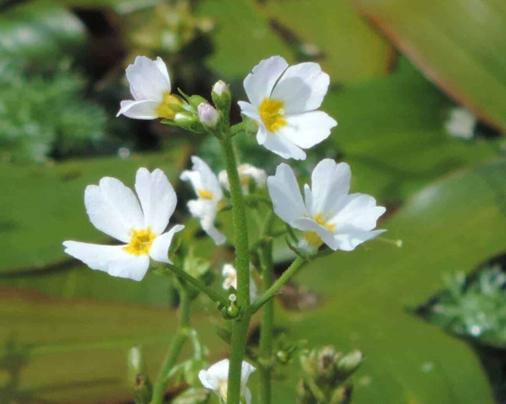 Volgens veel auteurs is waterviolier een van de meest aangeraden zuurstofplanten voor de vijver. Persoonlijk ben ik het daar helemaal niet mee eens. Waterviolier is immers geen gemakkelijke vijverplant. Hij verlangt kalm, helder water dat niet te warm kan worden en verkiest eerder schaduw. De plant verslijmt gemakkelijk en de groene kleur ervan verdwijnt dan. In eerste instantie breken de zijtakken vanzelf af en gaan drijven. Dit komt omdat de stengelhulte eerst van binnen afsterft. Het aanraden door de schrijvers zal waarschijnlijk veeleer te maken hebben met de mooie bloemen. Mooi meegenomen natuurlijk, maar in het geval van zuurstofplanten van ondergeschikt belang. Zuurstofplanten moeten in de vijver snel groeien, zuurstof produceren en afvalstoffen verbruiken. Wat het bloeien van de planten in “kunstmatige” omstandigheden betreft heb ik tot nu toe zelf weinig resultaat geboekt. Na zeven jaar moeizame cultuur bekwam ik uiteindelijk een pietluttig bloemstengeltje met enkele slecht opengaande bloempjes. En dan te weten dat waterviulier in de buurt in het wild massaal groeit en bloeit. Hopelijk heeft u meer geluk.