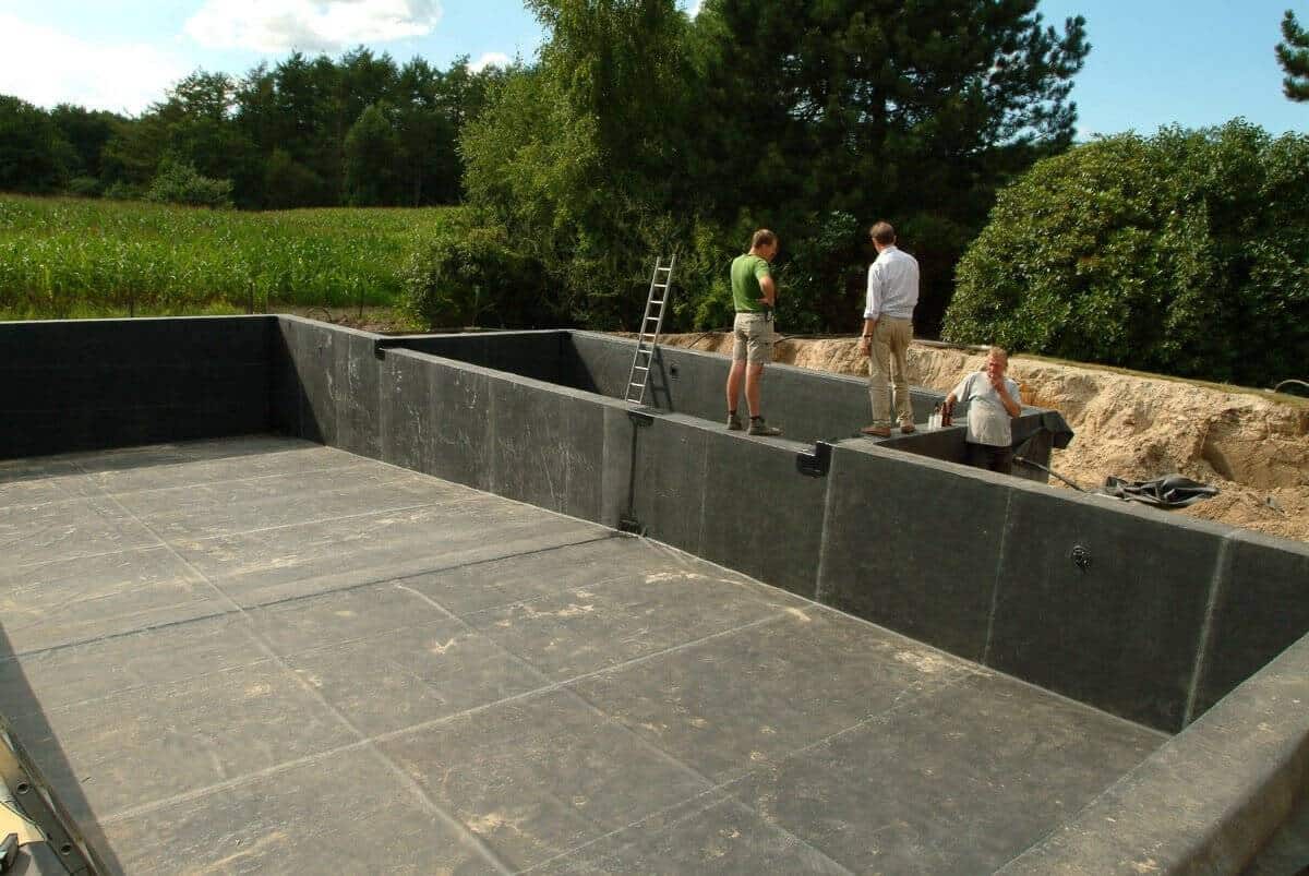 De kleur van de waterdichting is verschillend. Bij zwembaden is die meestal licht getint (lichtblauw, lichtgroen, lichtgrijs). Bij zwemvijvers maakt men bijna altijd gebruik van zwarte, of bijna zwarte folie. Dat heeft verschillende redenen waarvan de meest belangrijke zijn: de hogere levensduur, opslorpen van warmte en het esthetische. Vijvers met een zwarte waterdichting zijn mooier, zien er natuurlijker uit en de reflecties van planten en omgeving zijn er het meest spectaculair. Terwijl klassieke zwembaden vaak actief verwarmd worden is dat minder het geval met zwemvijvers. Bijverwarming in de zomer kan wel (bijvoorbeeld met zonnepanelen). Zwarte EPDM rubberfolie is het meest gebruikte afdichtingsmateriaal en gaat uitzonderlijk lang mee, namelijk vele tientallen jaren. De matzwarte bodem zorgt voor opslorpen van zonnewarmte. Dat betekent zwemwater dat 2 à 6 ° Celsius warmer is dan in een klassiek onverwarmd zwembad. Dat scheelt en het is gratis. Doordat EPDM bovendien een zeer hoge elasticiteit en soepelheid heeft, zelfs bij zeer lage temperaturen kan men er ook in de winter en zelfs tijdens vorstperiodes zwemvijvers mee afdichten. Denk eraan dat de kwaliteit en de levensduur van de afdichting het allerbelangrijkste is. U kunt zich wellicht voorstellen welk een ramp het is wanneer uw zwemvijver, na enkele jaren mooi volgroeid en in biologisch evenwicht, plots lek zou slaan. EPDM-geomembraan wordt wereldwijd door milieuorganisaties aanbevolen omwille van de lage impact op het milieu, de propere productie, uitzonderlijk lange levensduur en probleemloze recyclagemogelijkheden.